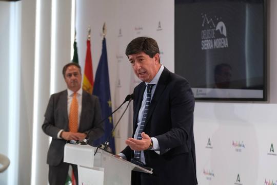 El vicepresidente de la Junta de Andalucía y consejero de Turismo, Regeneración, Justicia y Administración Local, Juan Marín , ha asistido hoy en Fitur a la presentación de Sierra Morena como uno de los más importantes destinos Starligth de Europa, y ha destacado el potencial de este segmento y la riqueza de los cielos andaluces para actividades relacionadas con el astroturismo.